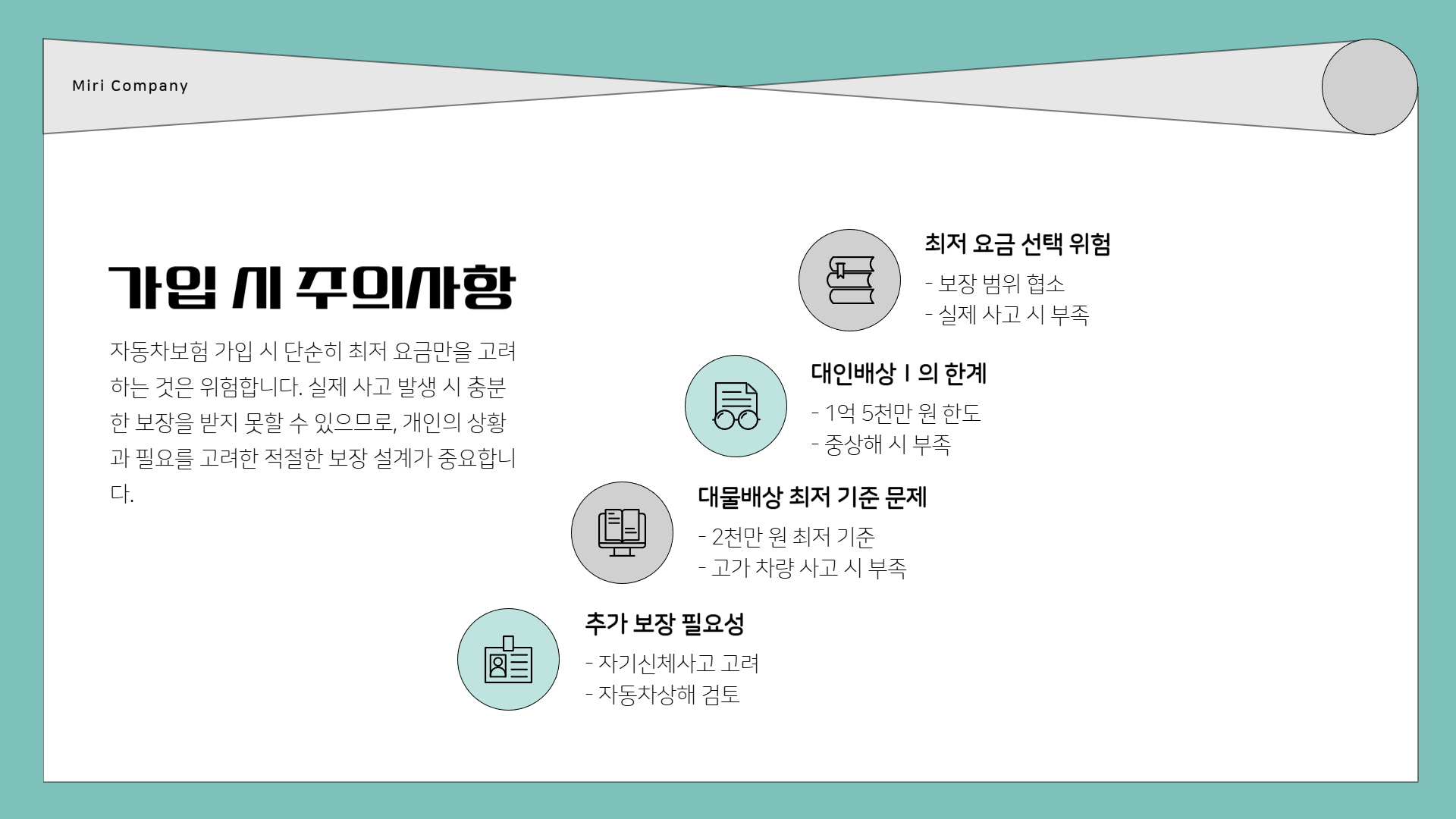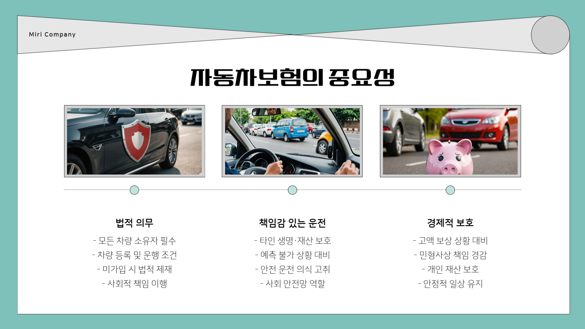 본인은 물론 타인의 생명과 재산에도 영향을 줄 수 있기 때문에, 보험 가입은 곧 책임감입니다.