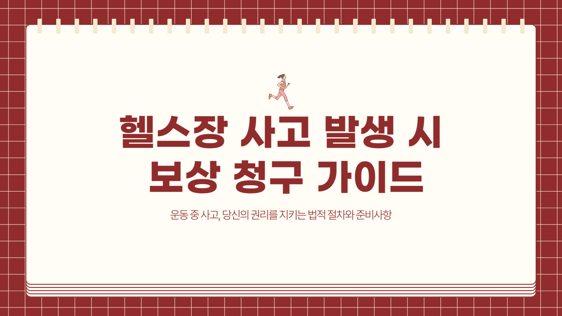 이 번에는 헬스장 사고 발생 시 보상을 받기 위한 절차와 준비해야 할 것들을 단계별로 자세히 안내드립니다.