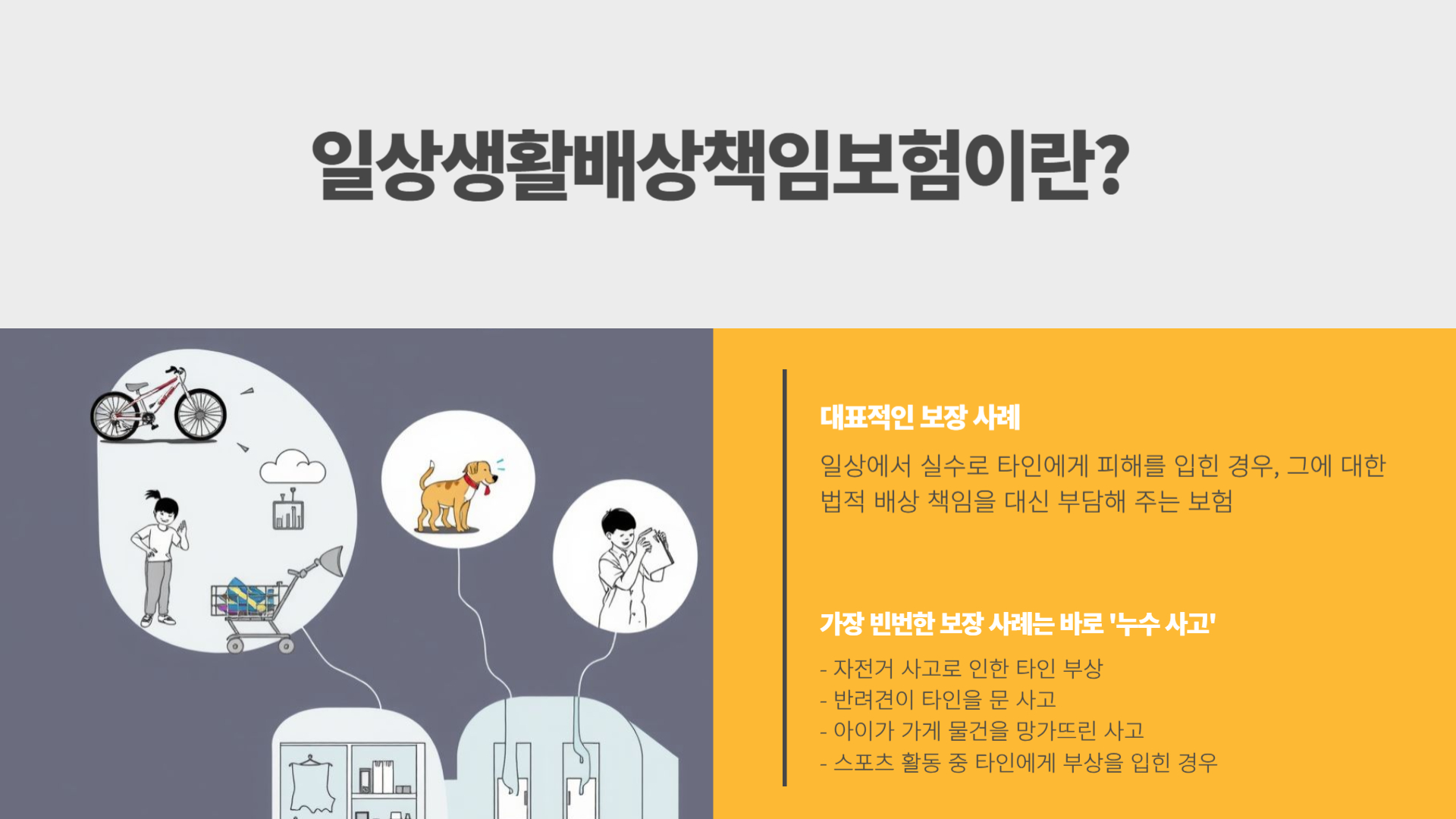 많은 분들이 이미 보험에 가입되어 있지만, 정작 일상생활배상책임 특약이 빠져 있는 경우가 있습니다.