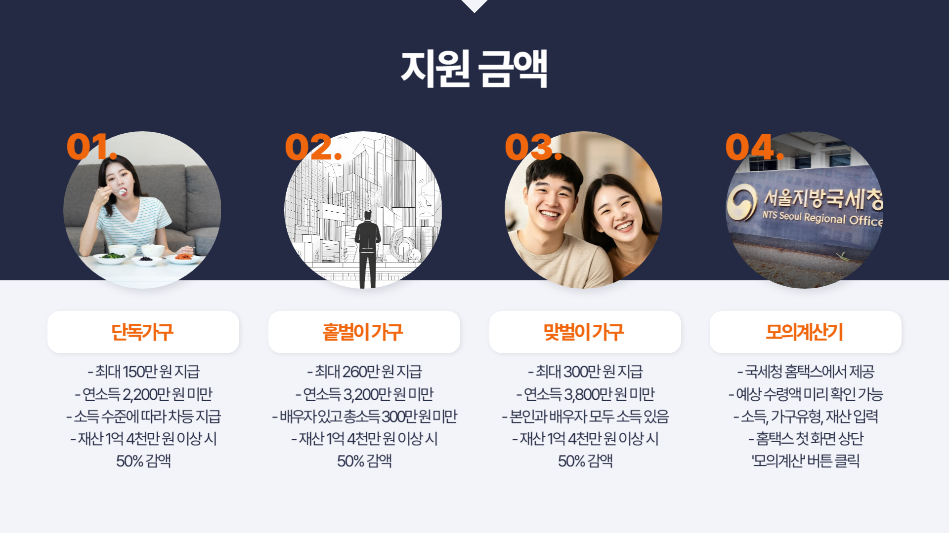 - 홑벌이 가구: 배우자가 있고 총소득이 300만 원 미만