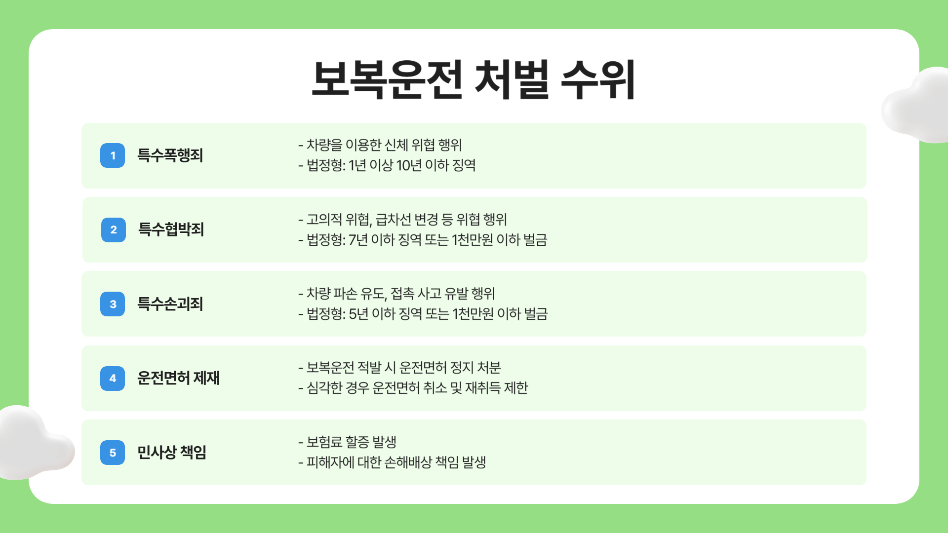 보복운전은 단순한 감정 표출을 넘어 형사처벌 및 민사상 책임으로 이어질 수 있는 중대한 범죄입니다. 억울한 피해를 입었을 경우 정확하게 신고하고, 가해자가 되지 않기 위해 감정을 조절하는 운전 습관이 필수입니다.
