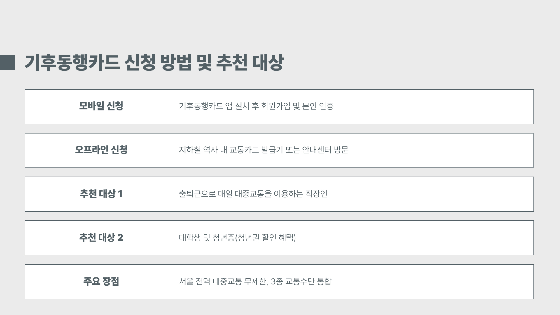 기후동행카드의 장점 요약