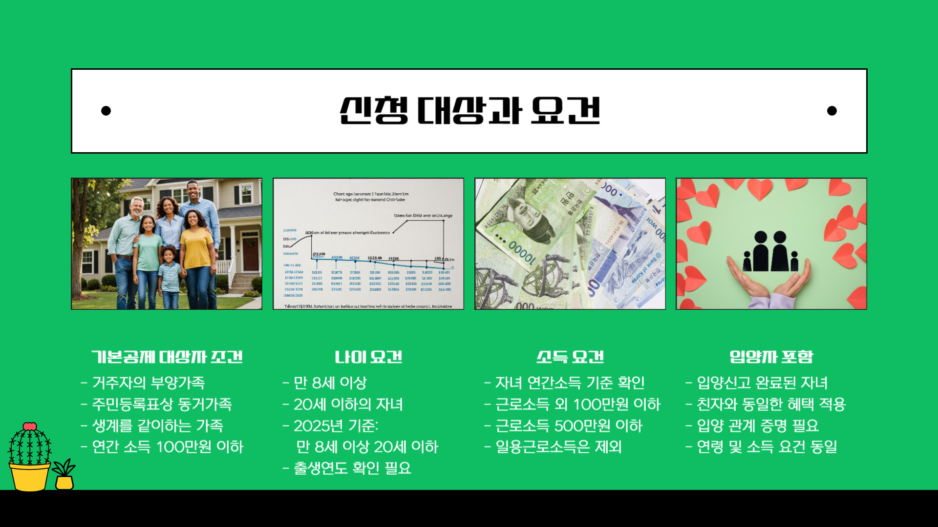 ● 나이 요건: 만 8세 이상 20세 이하의 자녀
