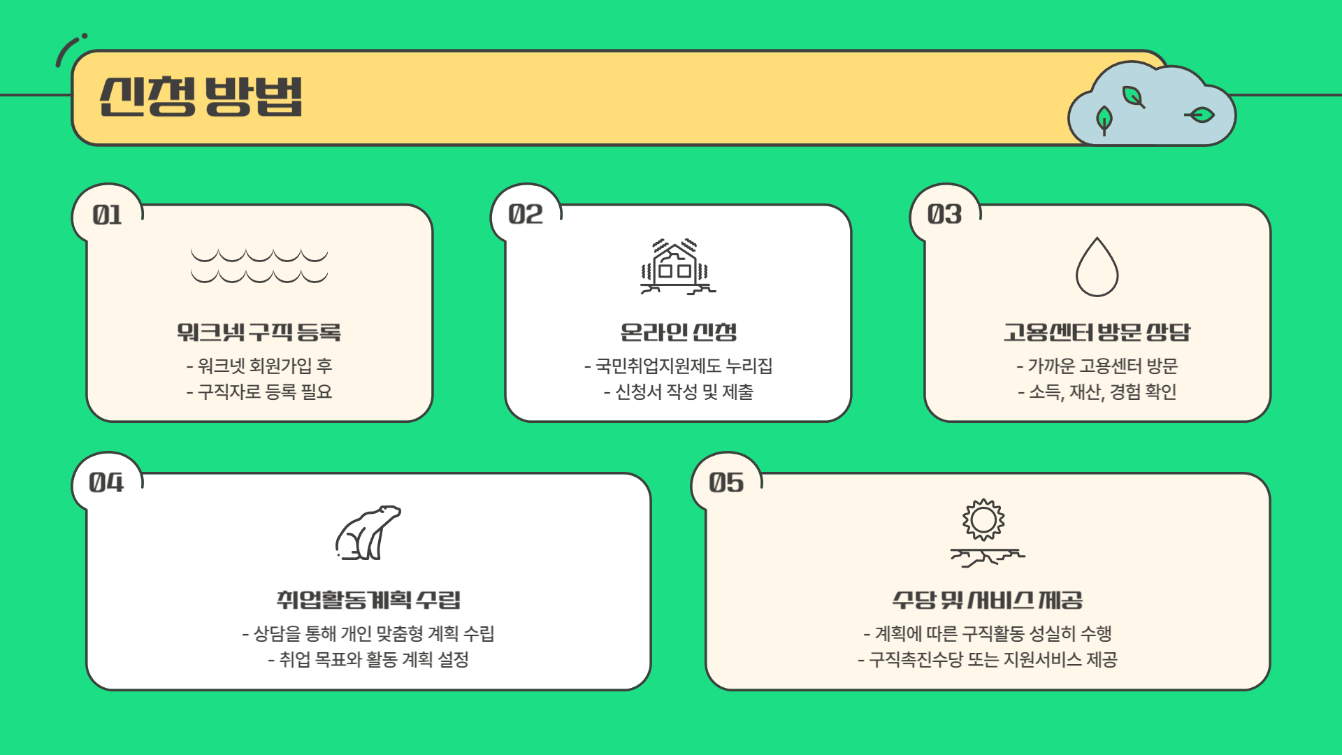 취업을 준비하고 있지만 생활비 걱정으로 고민이 많으신가요? '국민취업지원제도'는 그런 분들을 위해 마련된 제도입니다. 일할 의지는 있지만 일자리를 찾지 못한 분들을 대상으로 정부가 구직활동을 지원하고 일정한 수당을 지급하는 제도인데요. 오늘은 국민취업지원제도의 신청 조건, 지원 내용, 절차까지 상세히 알아보겠습니다.