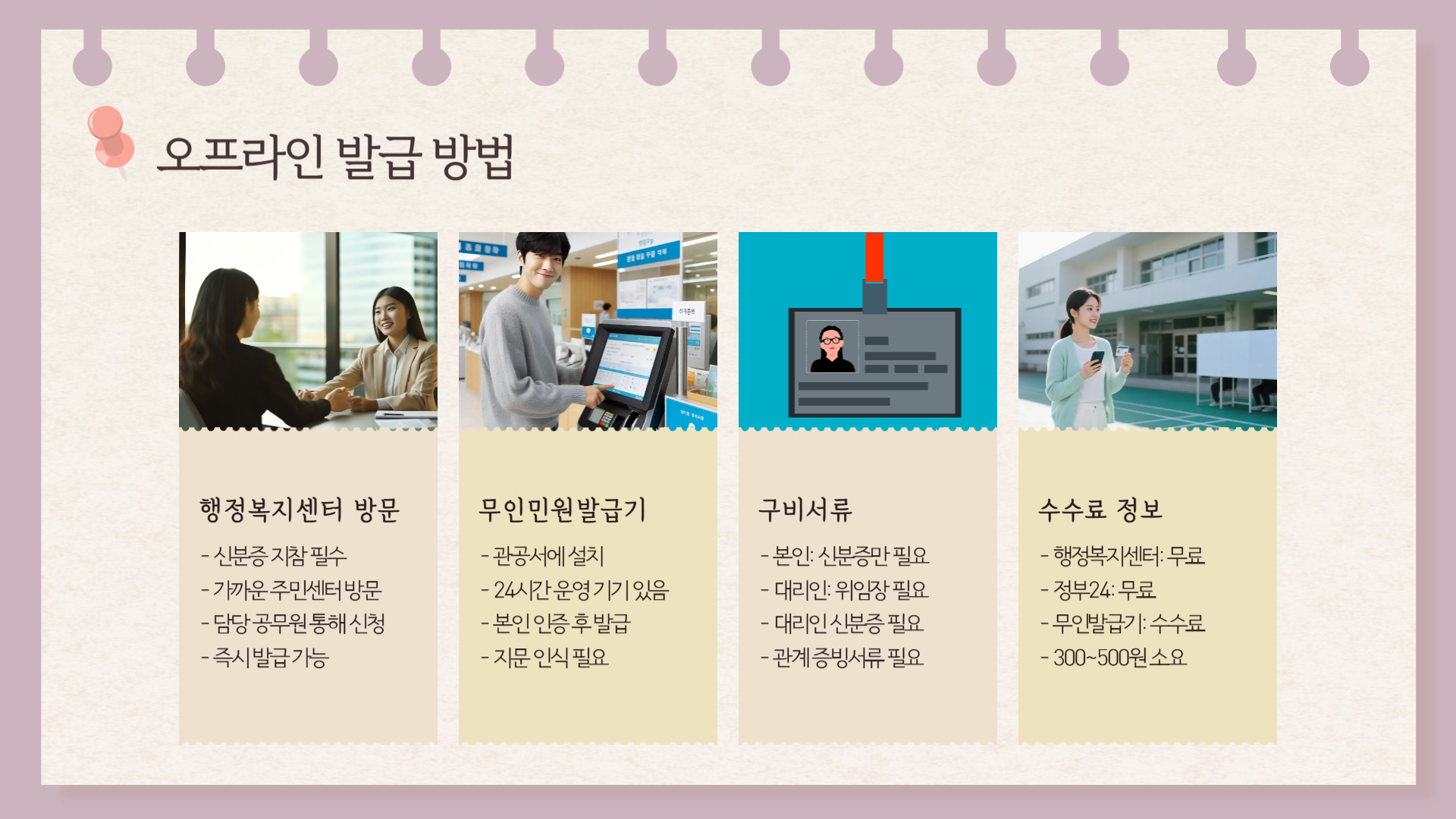 → 행정복지센터 및 정부24는 무료, 무인민원발급기 일부는 소액(300~500원) 부과될 수 있음.