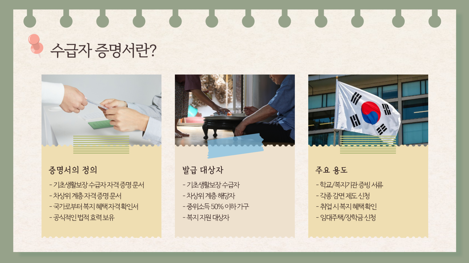 수급자 증명서는 단순한 문서 그 이상으로, 사회적 권리를 실현하는 수단이기도 합니다. 복지 혜택이 필요한 많은 분들이 이 증명서를 통해 다양한 지원을 받고 있으며, 절차를 미리 잘 숙지해 두면 급할 때 빠르게 대응할 수 있습니다.