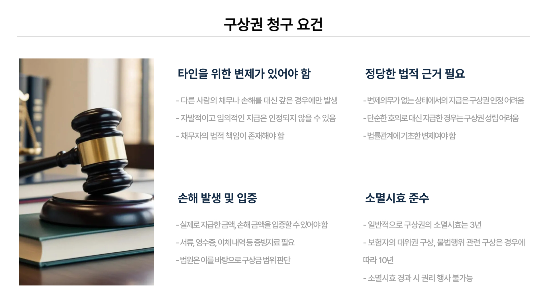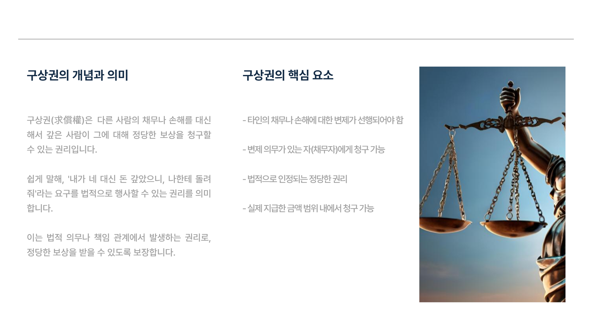 구상권은 단순한 법률 용어가 아니라, 실생활에서 우리 권리를 지켜주는 중요한 장치입니다.