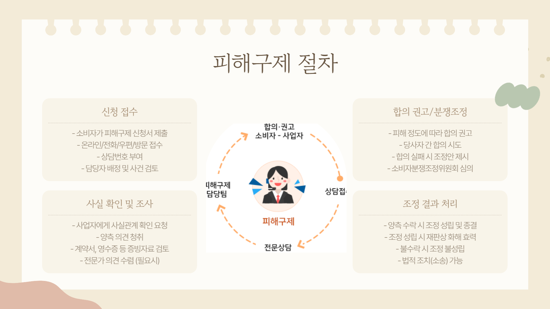 소비자가 신청 → 상담번호 및 담당자 배정 - 사실 확인 및 자료 조사