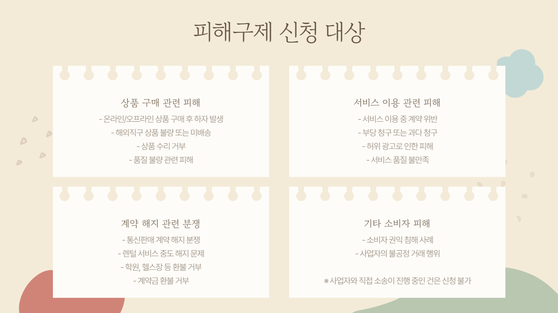 - 통신판매, 렌털, 학원, 헬스장 등 계약 해지 분쟁