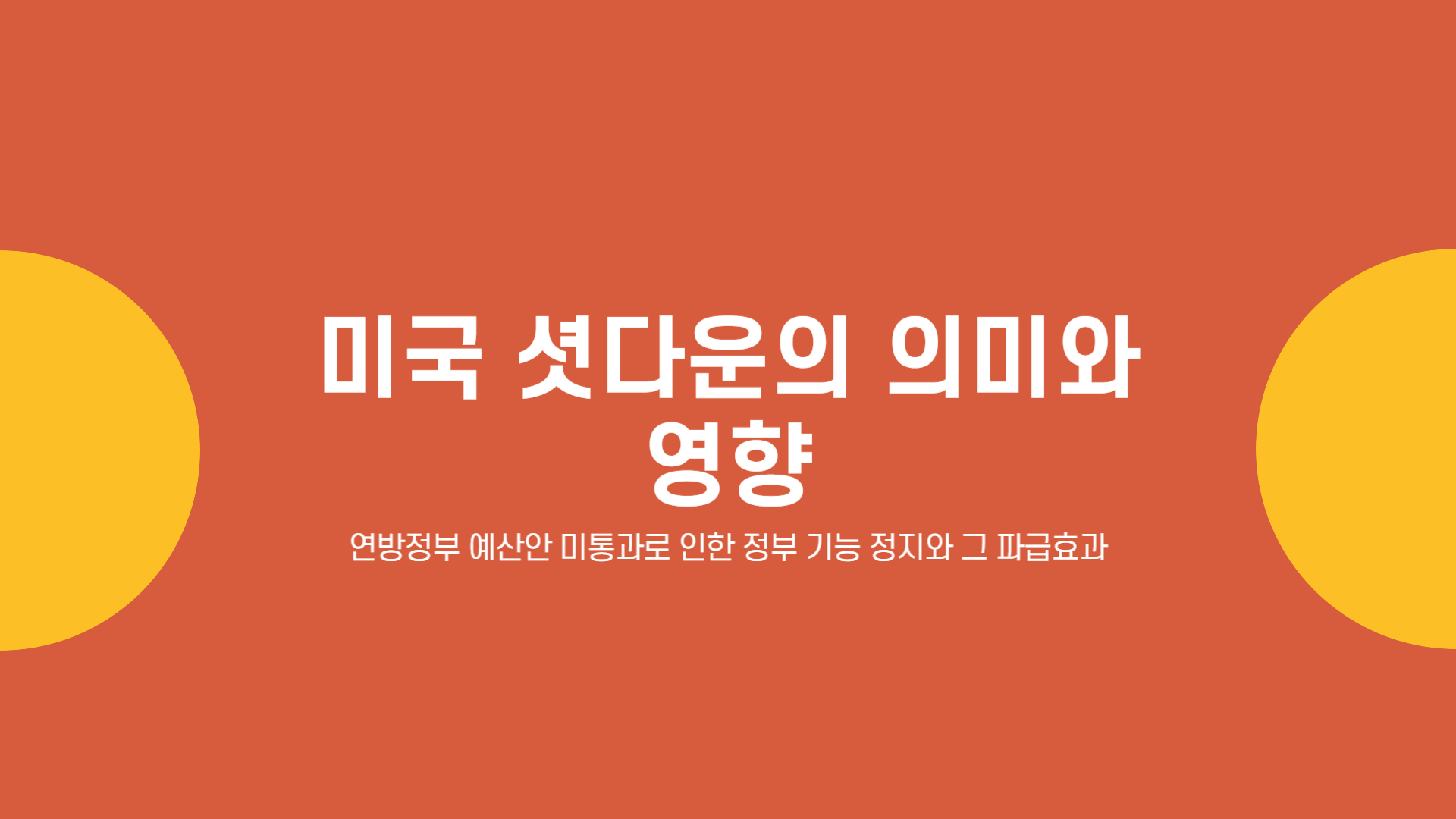 미국 셧다운(Government Shutdown)이란, 연방정부의 예산안이 제때 통과되지 않아 정부의 비필수 기능이 중단되는 상태를 말합니다.