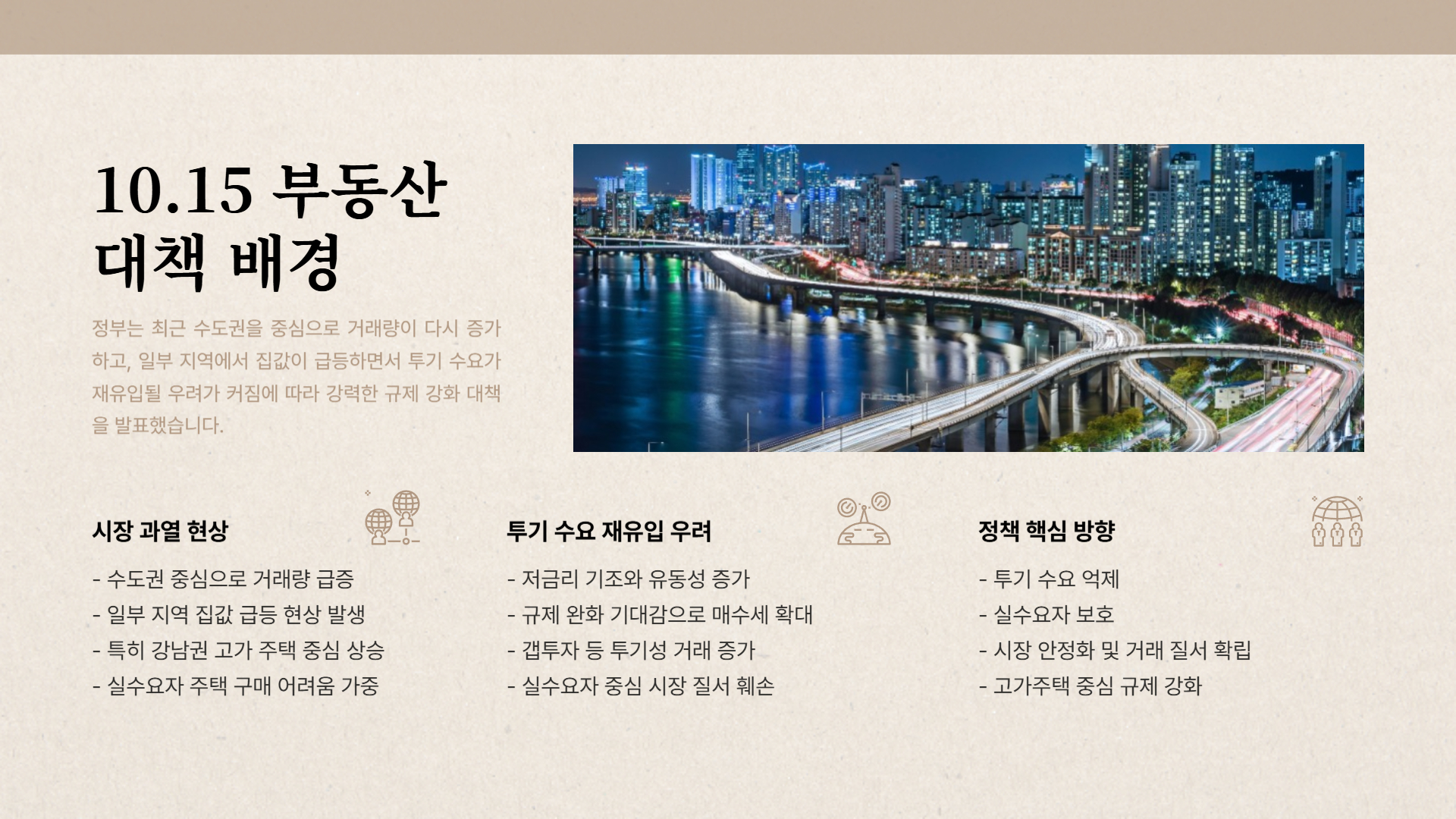 따라서 이번 글에서는 10.15 대책의 주요 내용과 변화 포인트를 일반 독자도 쉽게 이해할 수 있도록 요약·정리했습니다.