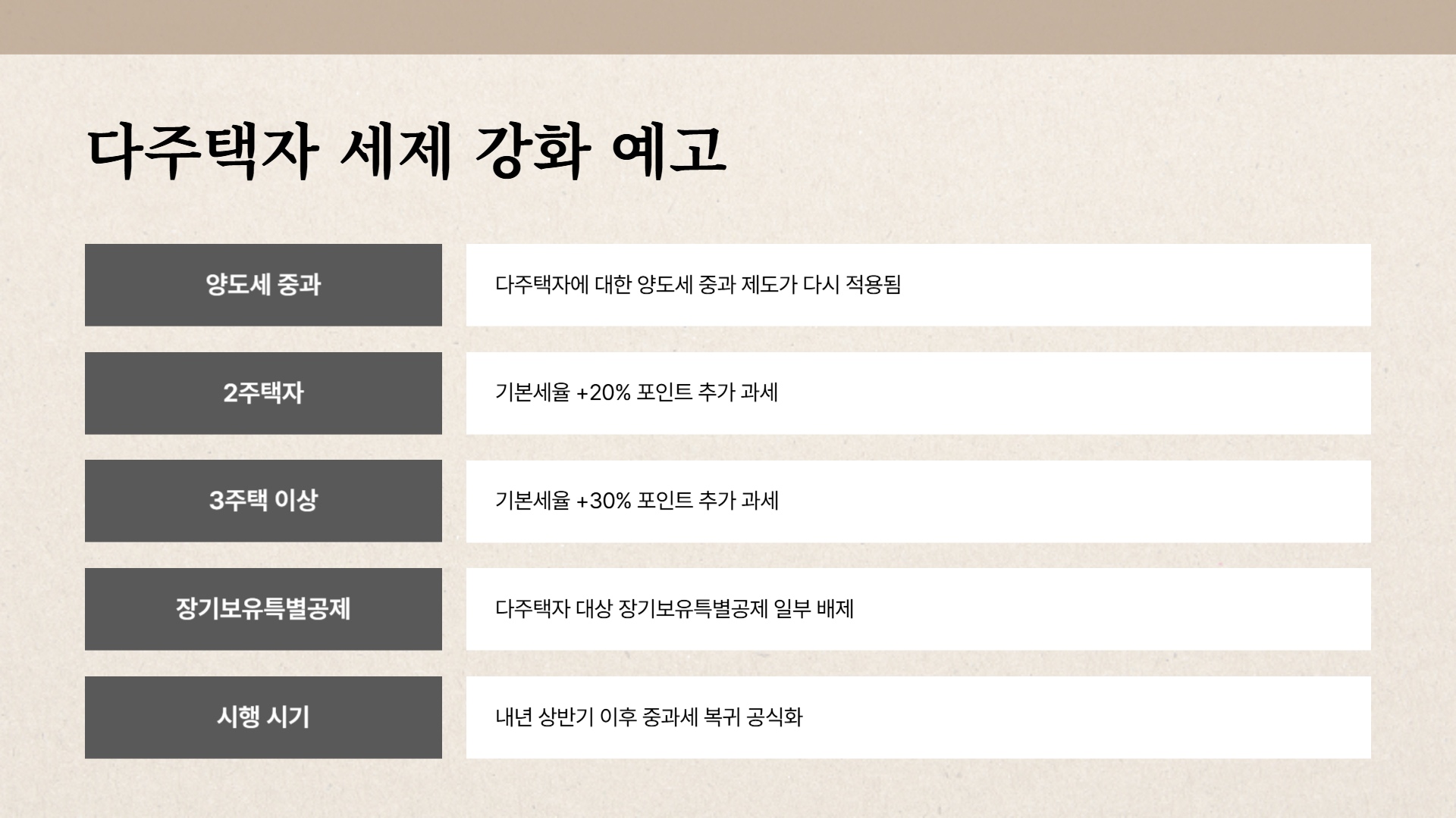 핵심 요약 ③ : 다주택자 세제 강화 예고
