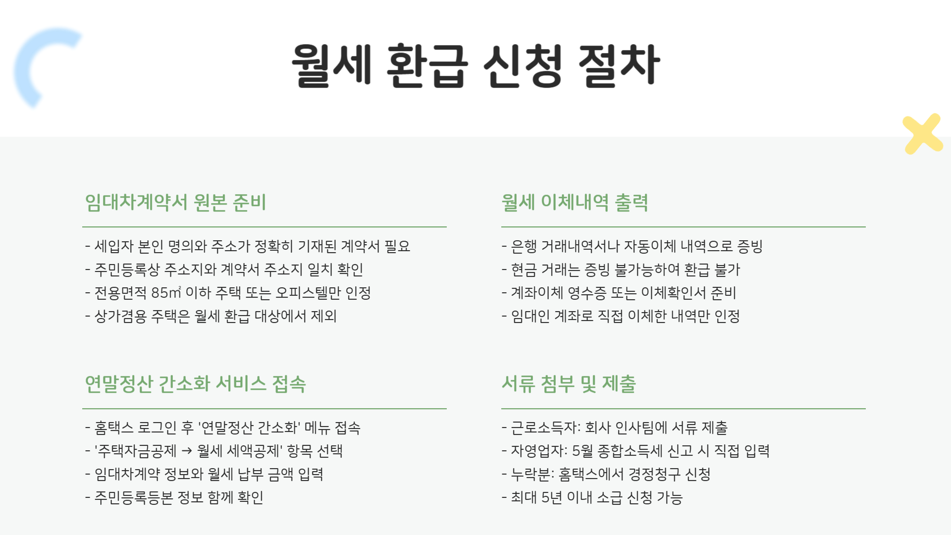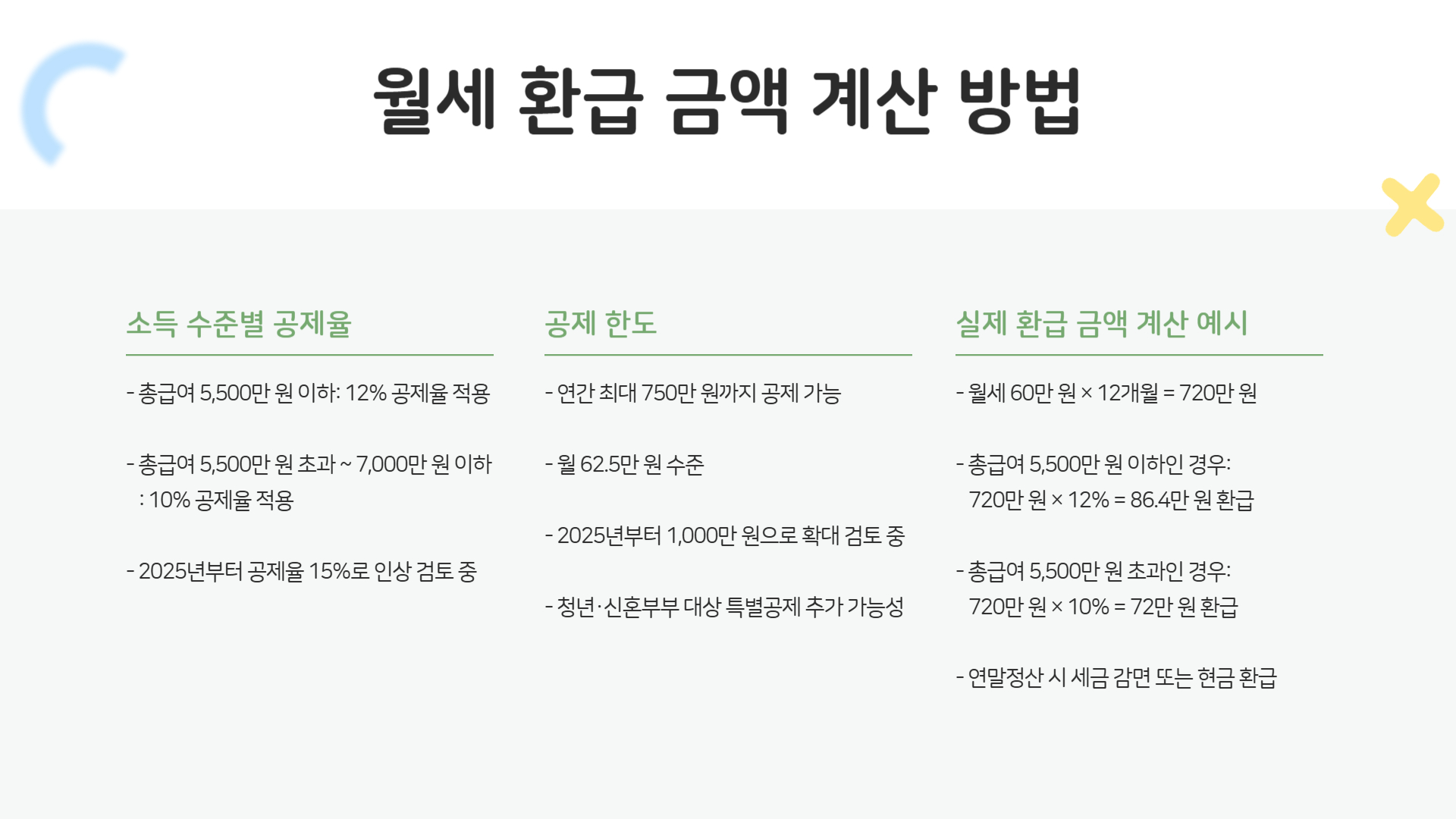 특히 현금으로 월세를 낸 경우 증빙이 되지 않아 환급이 불가능하다는 점을 주의하세요.