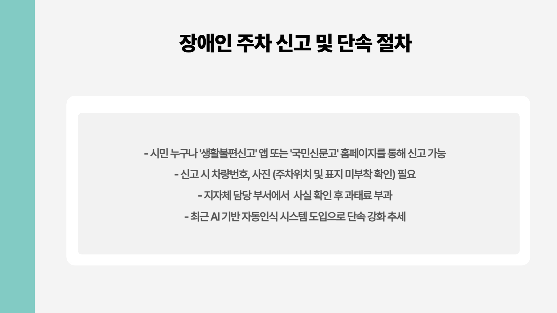 - 장애인용 표지를 부착했더라도, 실제 장애인이 차량에 타지 않았다면 위반으로 간주됩니다.
