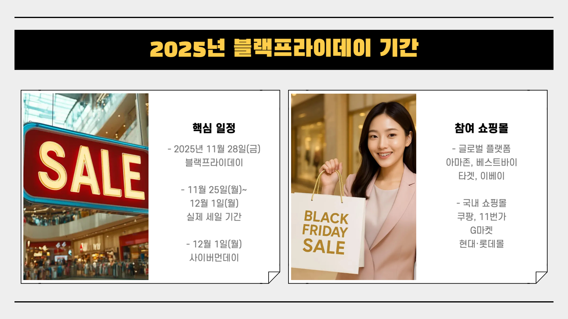 이번에는 블랙프라이데이의 정확한 의미, 유래, 그리고 2025년 블랙프라이데이의 기간과 일정까지 한눈에 정리해드립니다.