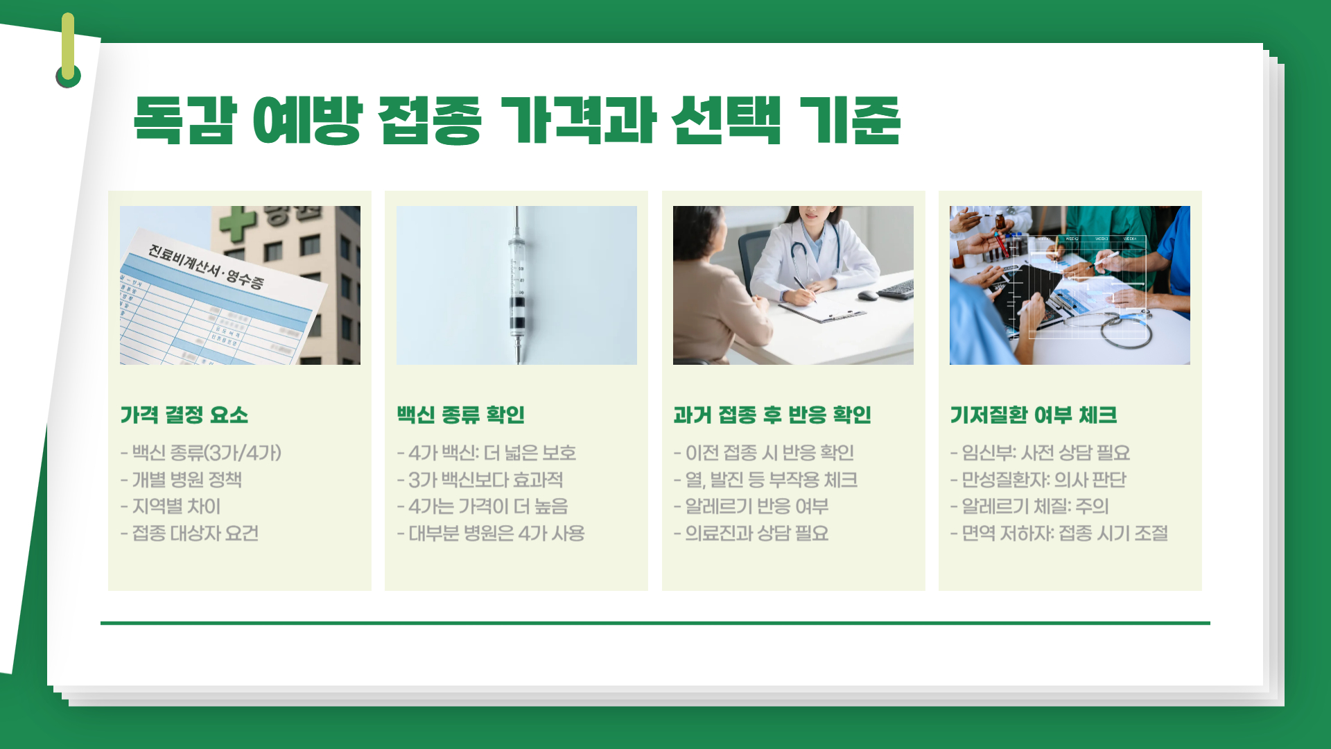 - 가족 단위로 접종 시 비용이 함께 들어갈 수 있으므로 병원별 패키지나 할인 여부 문의 가능