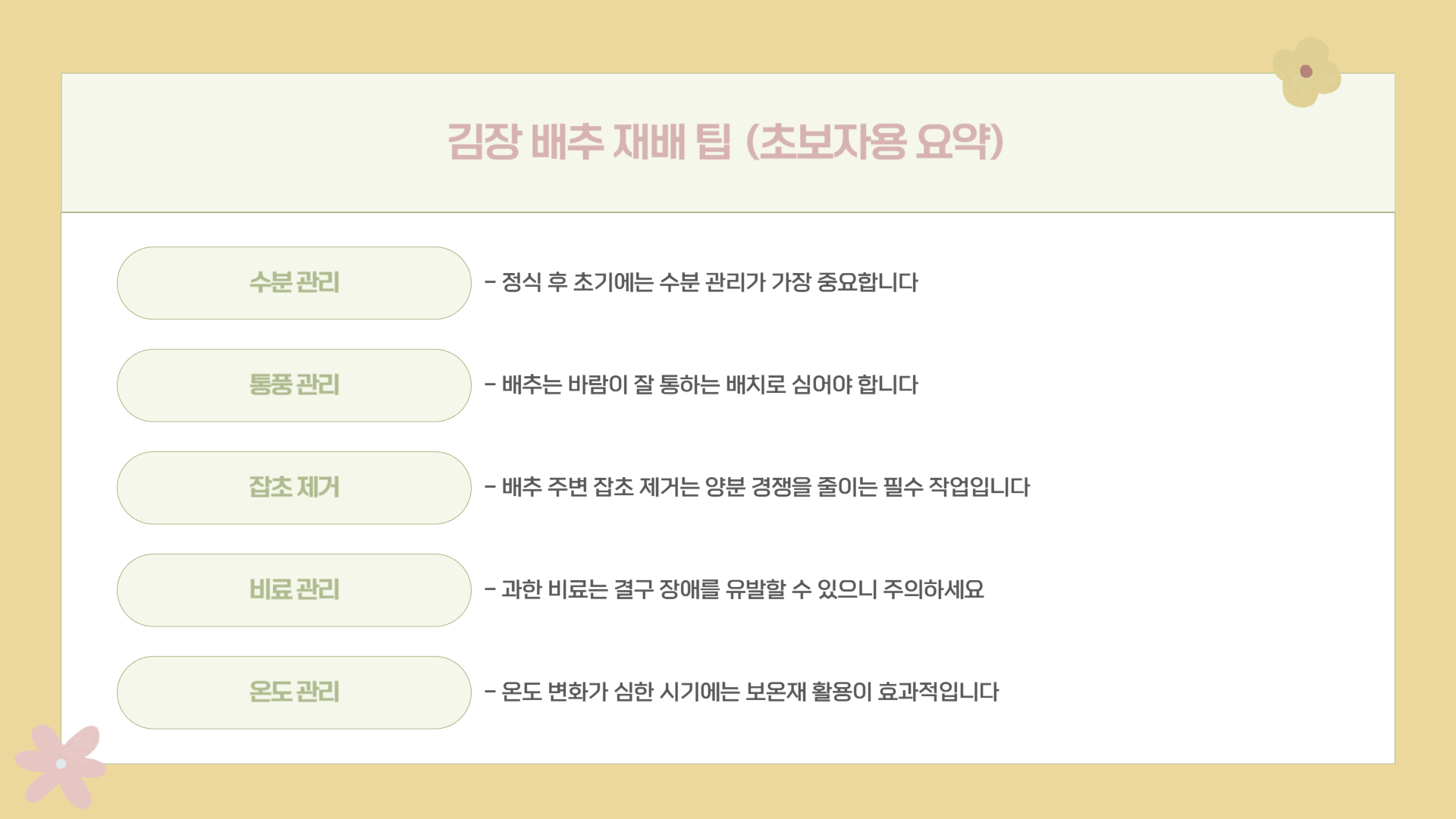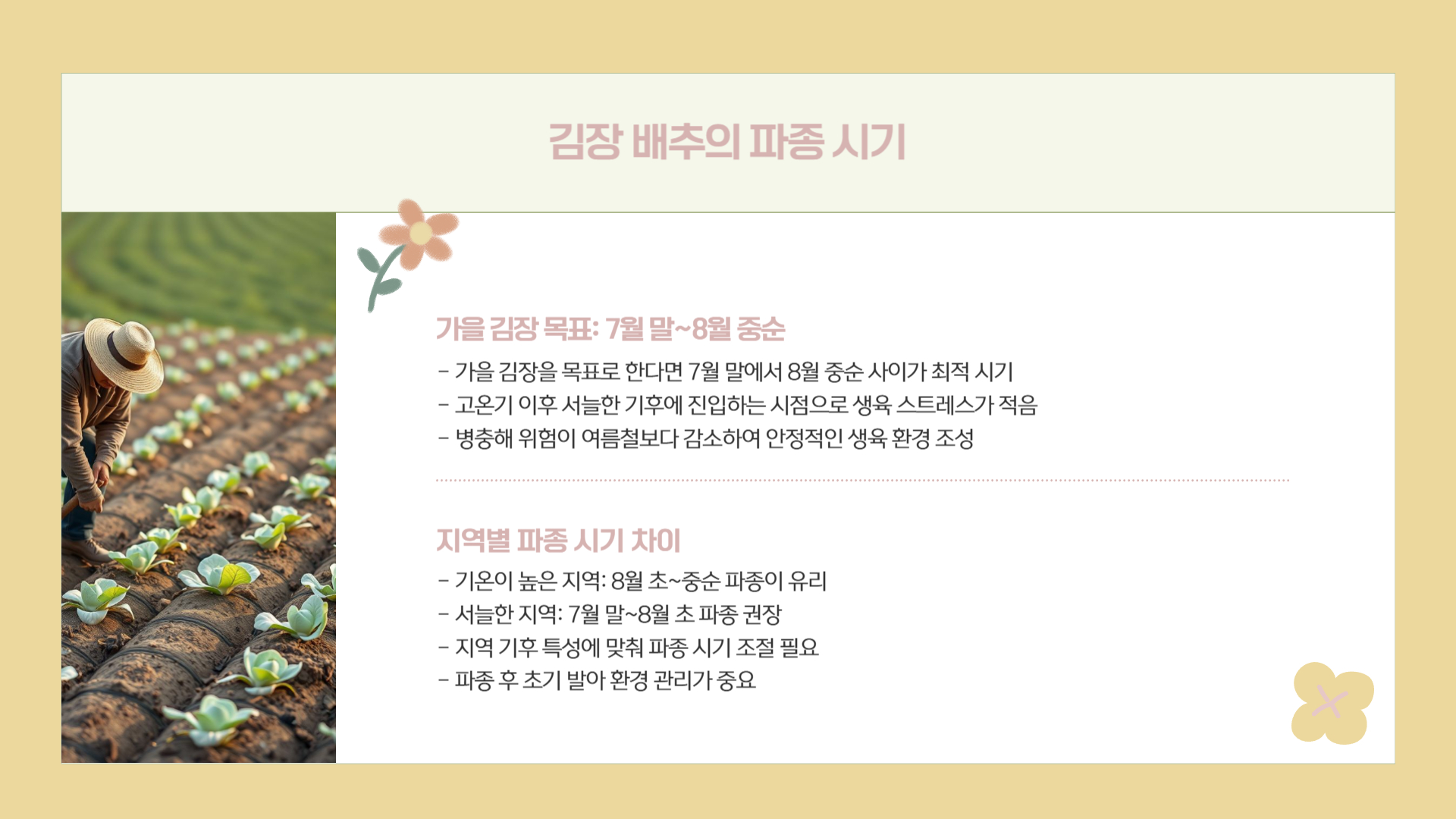 김장 배추 재배 팁 (초보자용 요약)