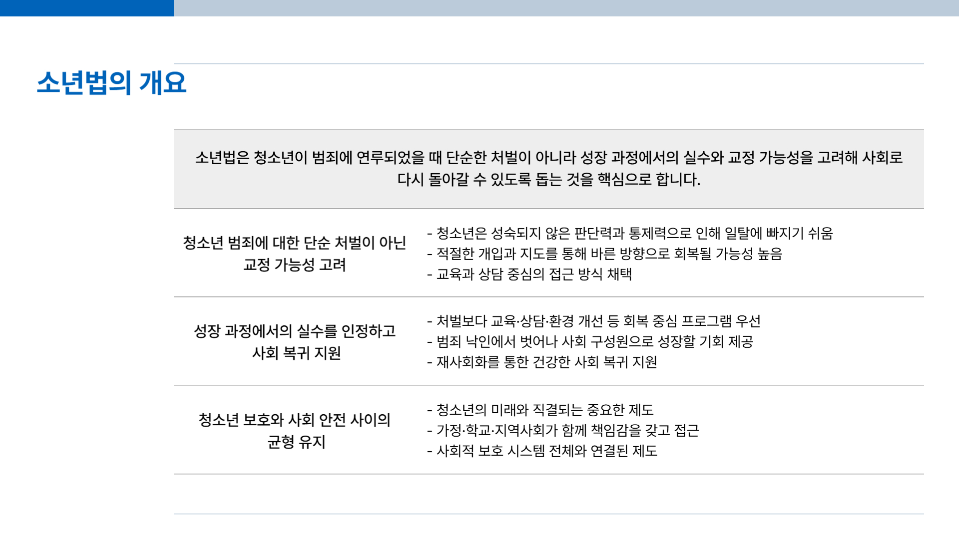 마지막으로 강조하자면, 소년법의 목적은 “관대함”이 아니라 “회복과 예방”입니다.