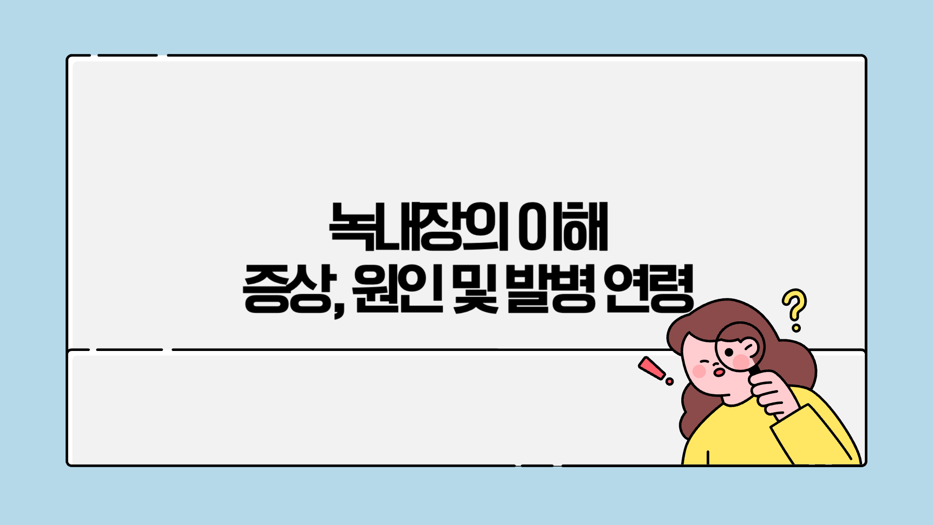 녹내장은 많은 사람들이 이름은 들어봤지만, 막상 어떤 질환인지 정확히 알지 못한 채 지나치기 쉬운 안과 질환입니다. 특히 시력이 서서히 나빠지는 특성 때문에 노안이나 단순한 눈의 피로로 오해하는 경우가 많고, 증상이 뚜렷해졌을 때는 이미 시신경 손상이 상당 부분 진행된 뒤인 경우도 적지 않습니다. 녹내장은 한 번 손상된 시신경이 회복되지 않는다는 점에서 조기 발견이 무엇보다 중요하며, 평생 관리가 필요한 질환으로 분류됩니다. 이번에는 녹내장의 대표적인 증상과 주요 원인, 그리고 가장 많이 발생하는 나이대를 중심으로 녹내장을 보다 현실적으로 이해할 수 있도록 정리해봤어요!