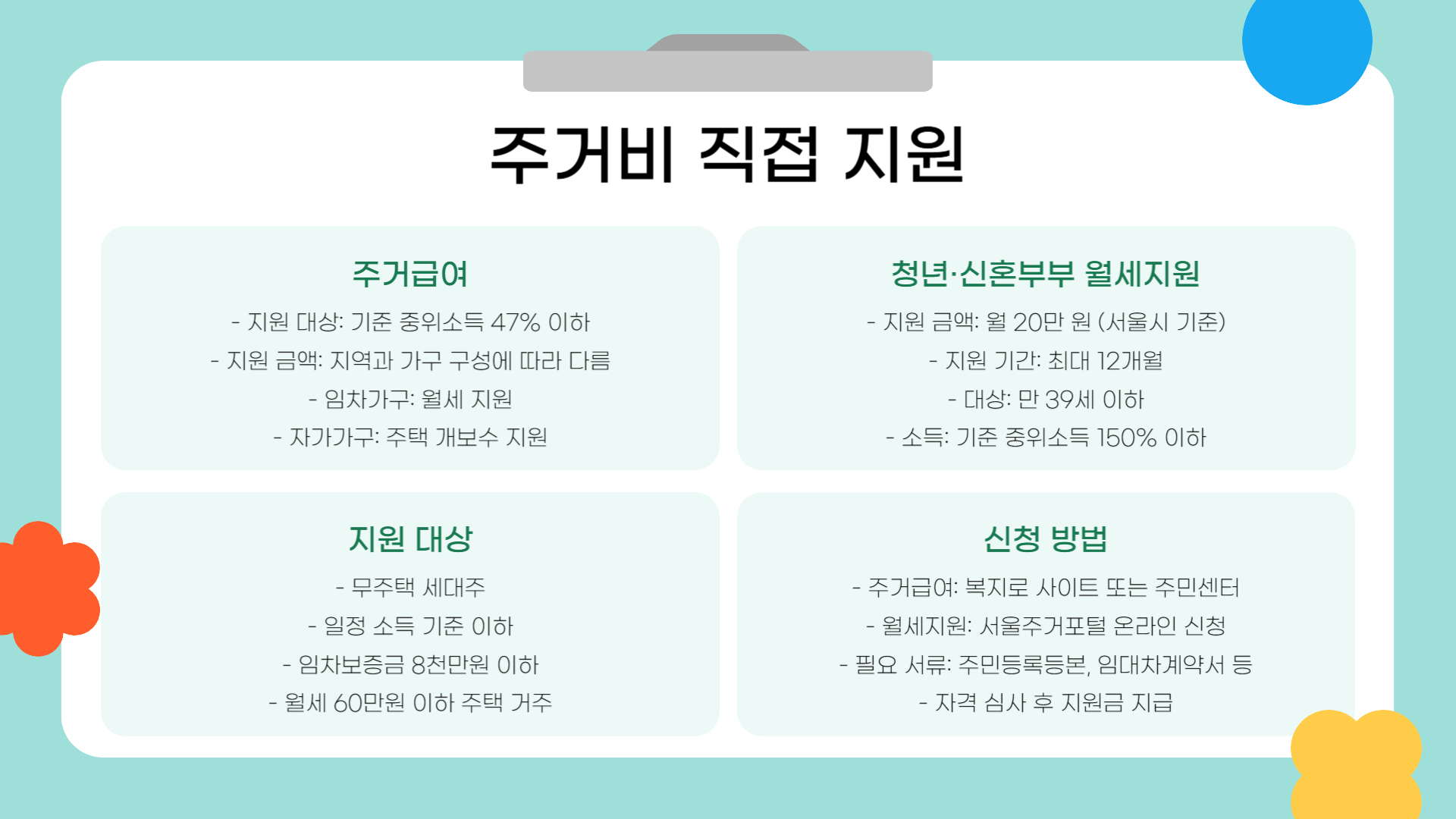 3. 주거비 직접 지원 – 주거급여 및 월세지원