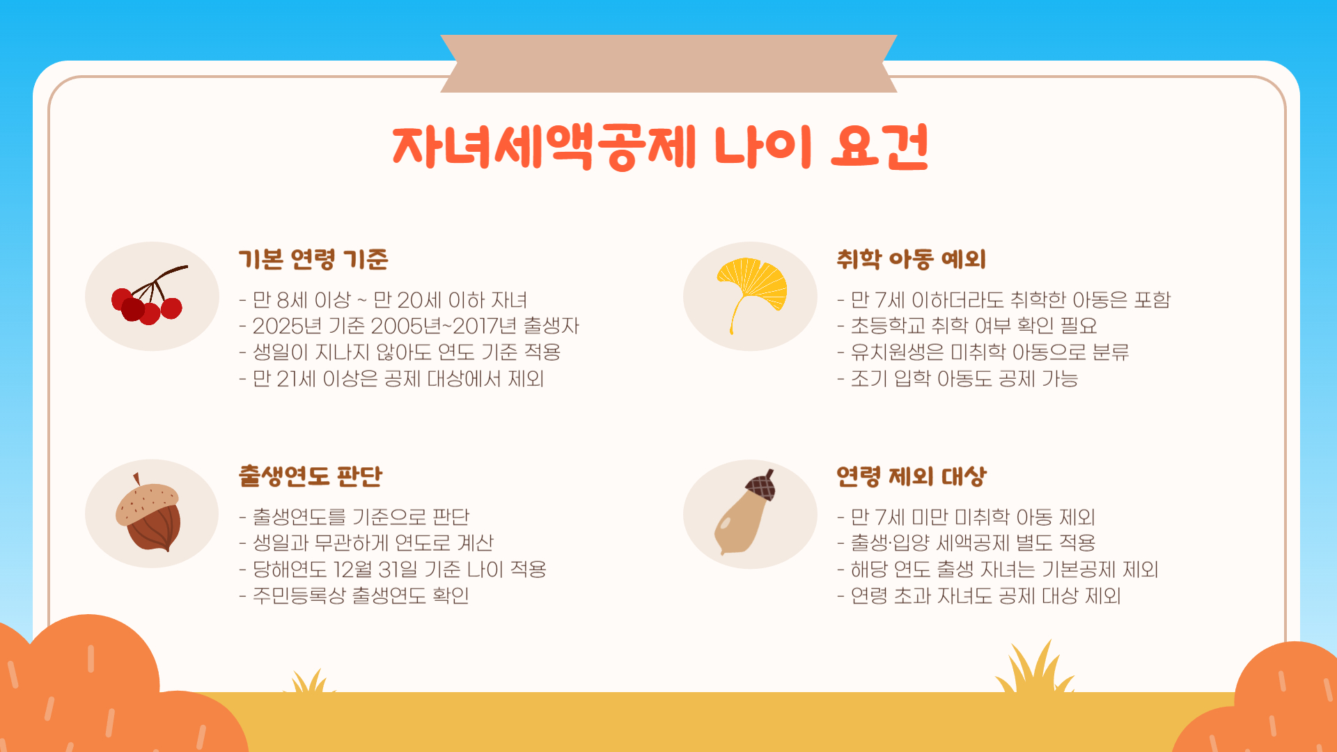 공제 적용 대상 요건 만 8세 ~ 만 20세 자녀