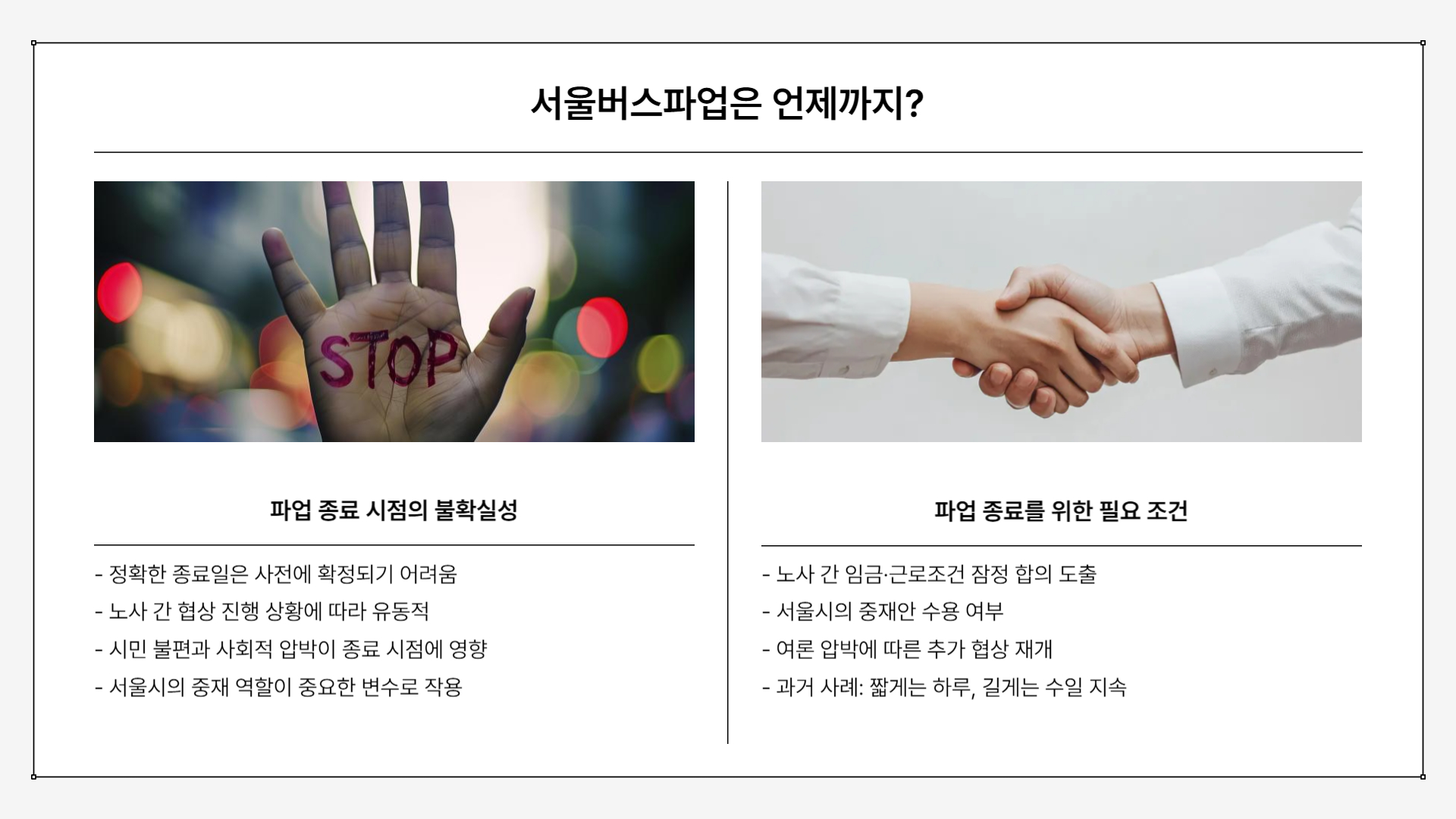 많은 시민들이 가장 궁금해하는 부분은 바로 파업 종료 시점입니다.