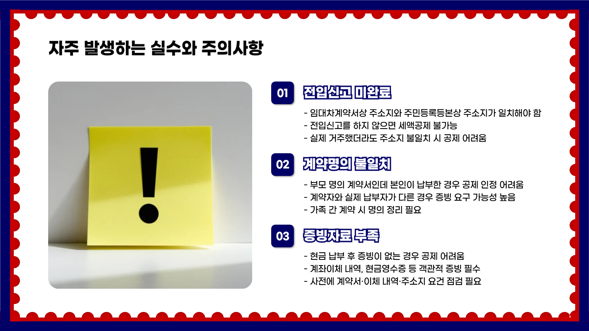이 중 일부는 추가 서류 제출로 보완 가능하므로, 무조건 포기하지 말고 확인이 필요합니다.