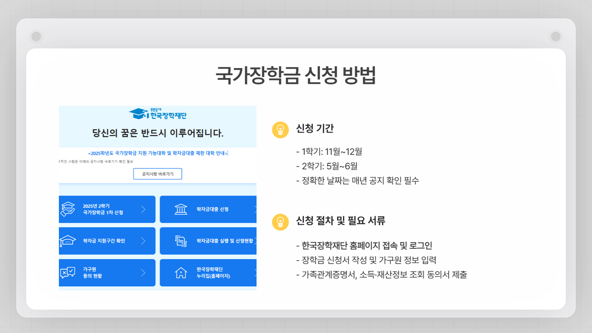 → 가구원 동의 지연 시 전체 일정이 지체됨 - 등록금 반환 시 국가장학금 차감 여부 확인 필수
