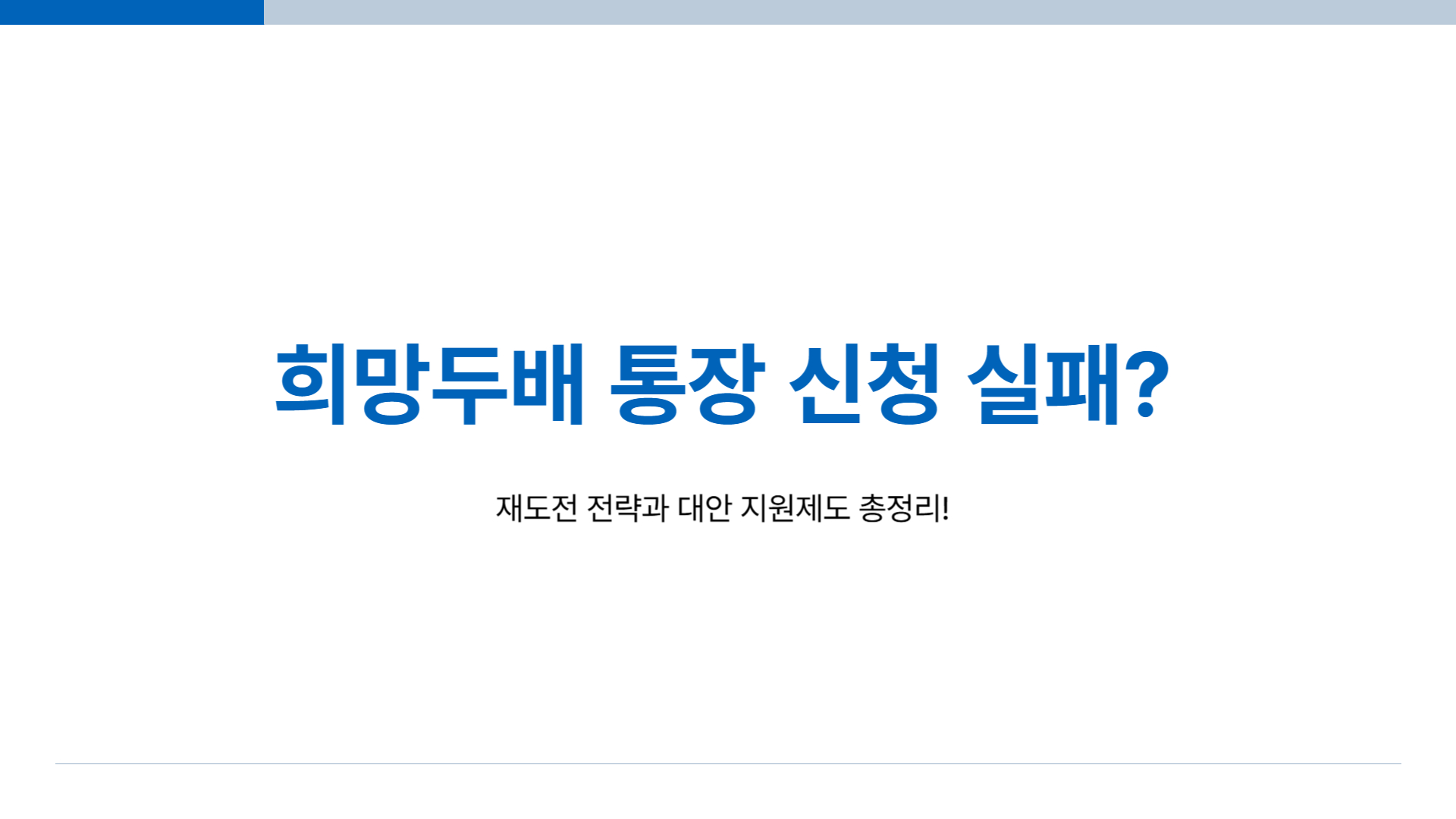 이번 글에서는 희망두배 통장 탈락 후 재도전 방법과 활용 가능한 대체 지원제도를 정리해 드립니다.