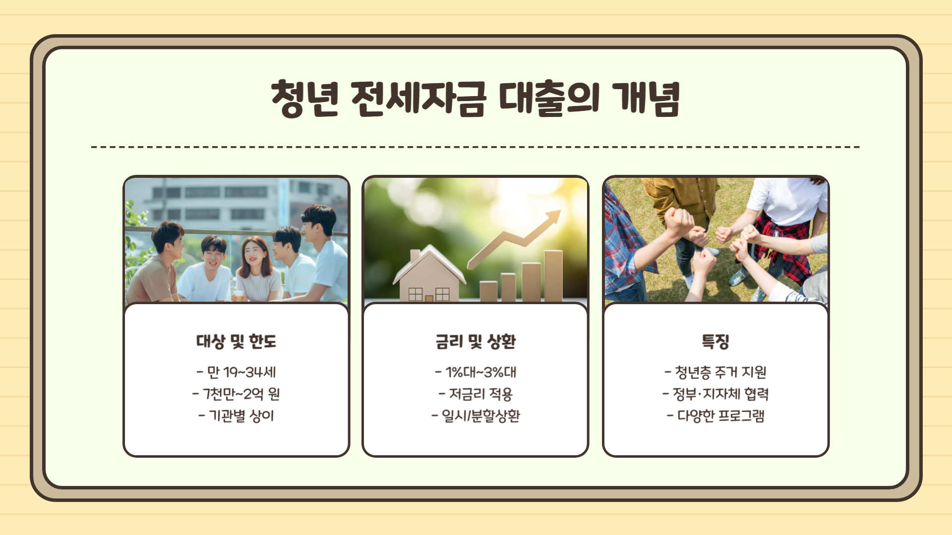 - 금리: 약 1%대~3%대 저금리 적용