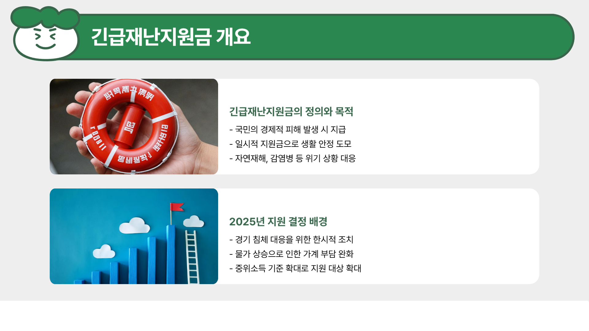 긴급재난지원금은 자연재해, 감염병 확산 등으로 인해 국민의 경제적 피해가 발생했을 때 정부가 일시적으로 지급하는 지원금입니다. 2025년에는 경기 침체와 물가 상승에 대응하기 위해 한시적으로 지원이 결정되었습니다.