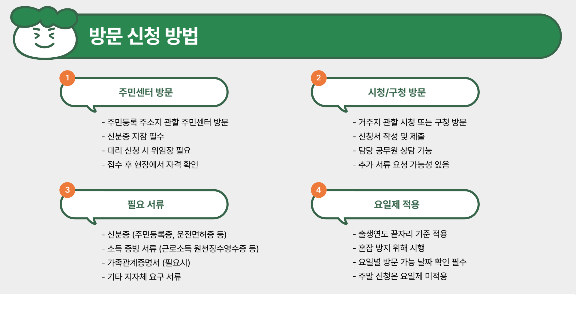 - 신분증과 소득 증빙서류 지참 필수