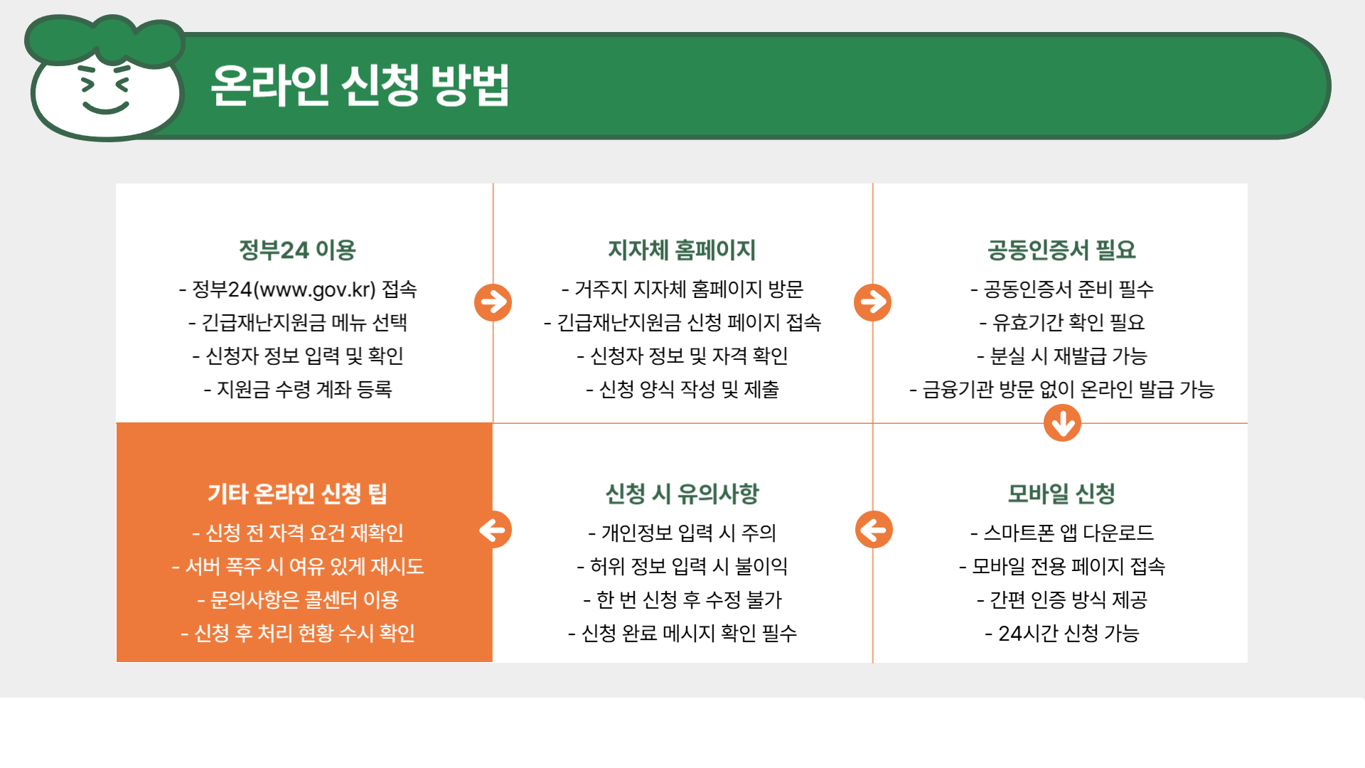 - 정부24(www.gov.kr) 또는 각 지자체 홈페이지에서 신청 가능