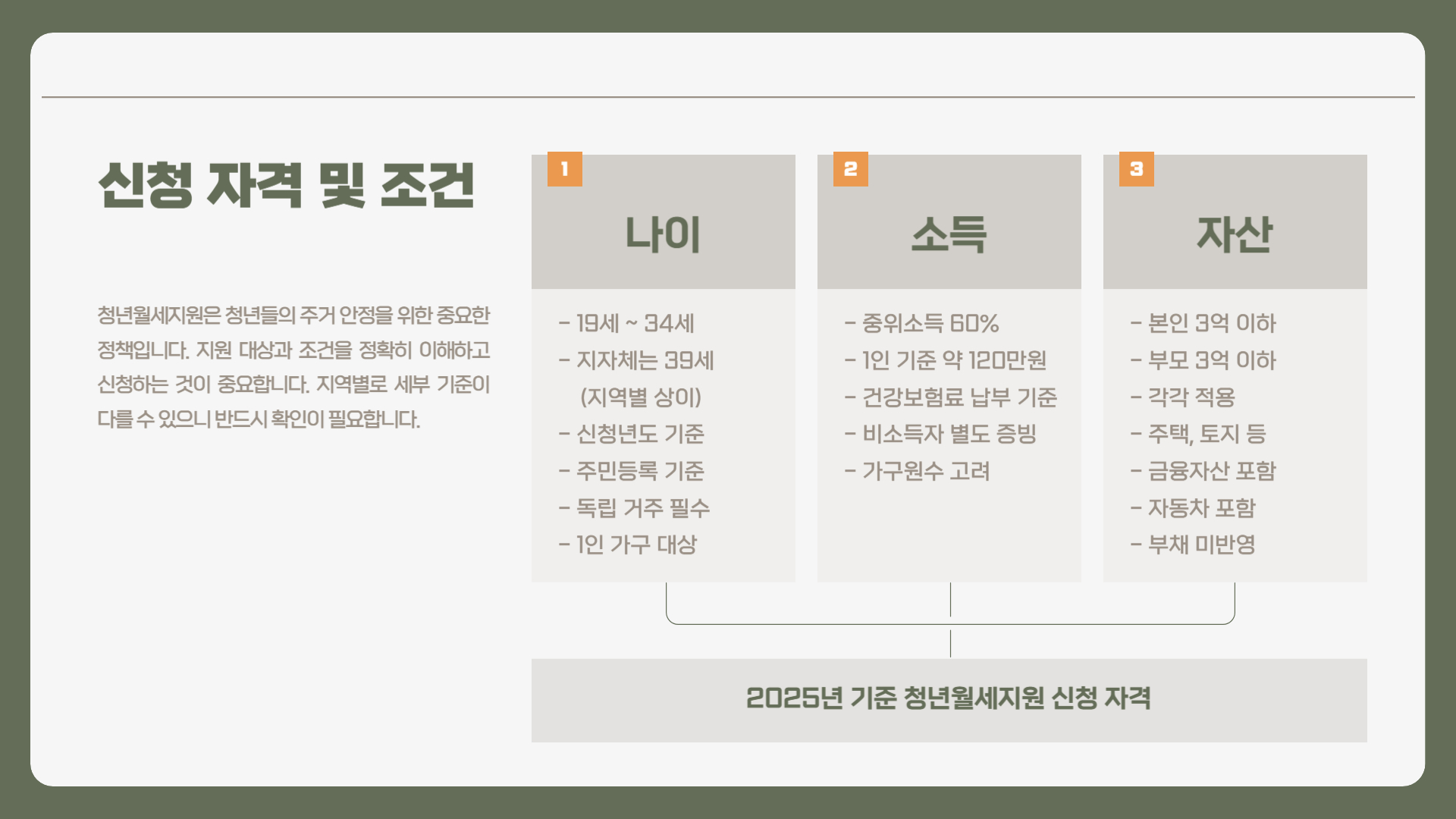 | 자산 | 본인 및 부모 각각 3억 원 이하 |