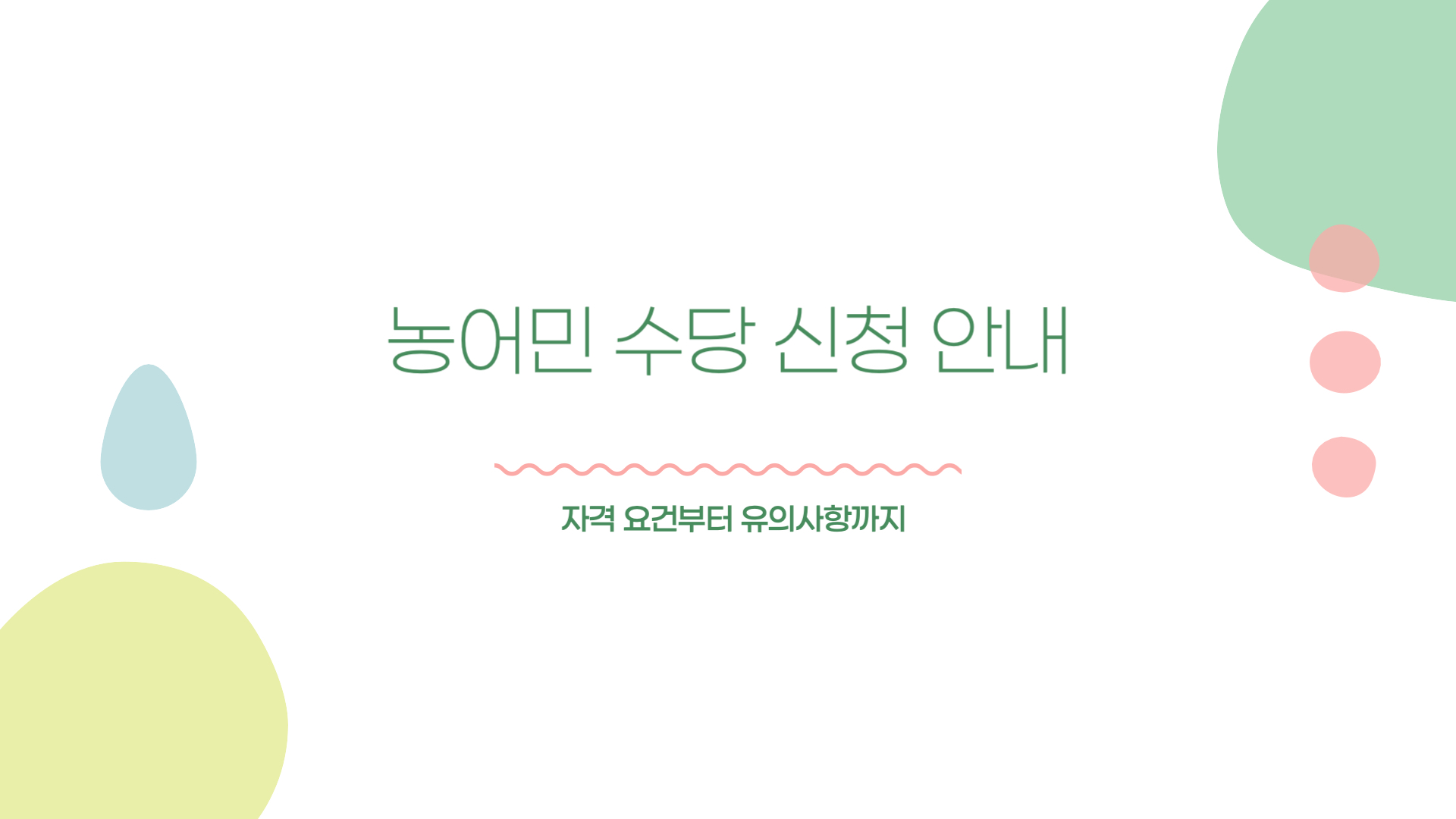 농어민 수당 신청에 대해 궁금하신가요? 이 글에서는 농어민 수당이 무엇인지, 신청할 수 있는 조건, 준비해야 할 서류, 지급 금액과 주의할 점까지 체계적으로 안내드립니다. 농어민으로서 안정적인 소득과 혜택을 받고 싶다면 꼭 끝까지 읽어보시길 추천드립니다.