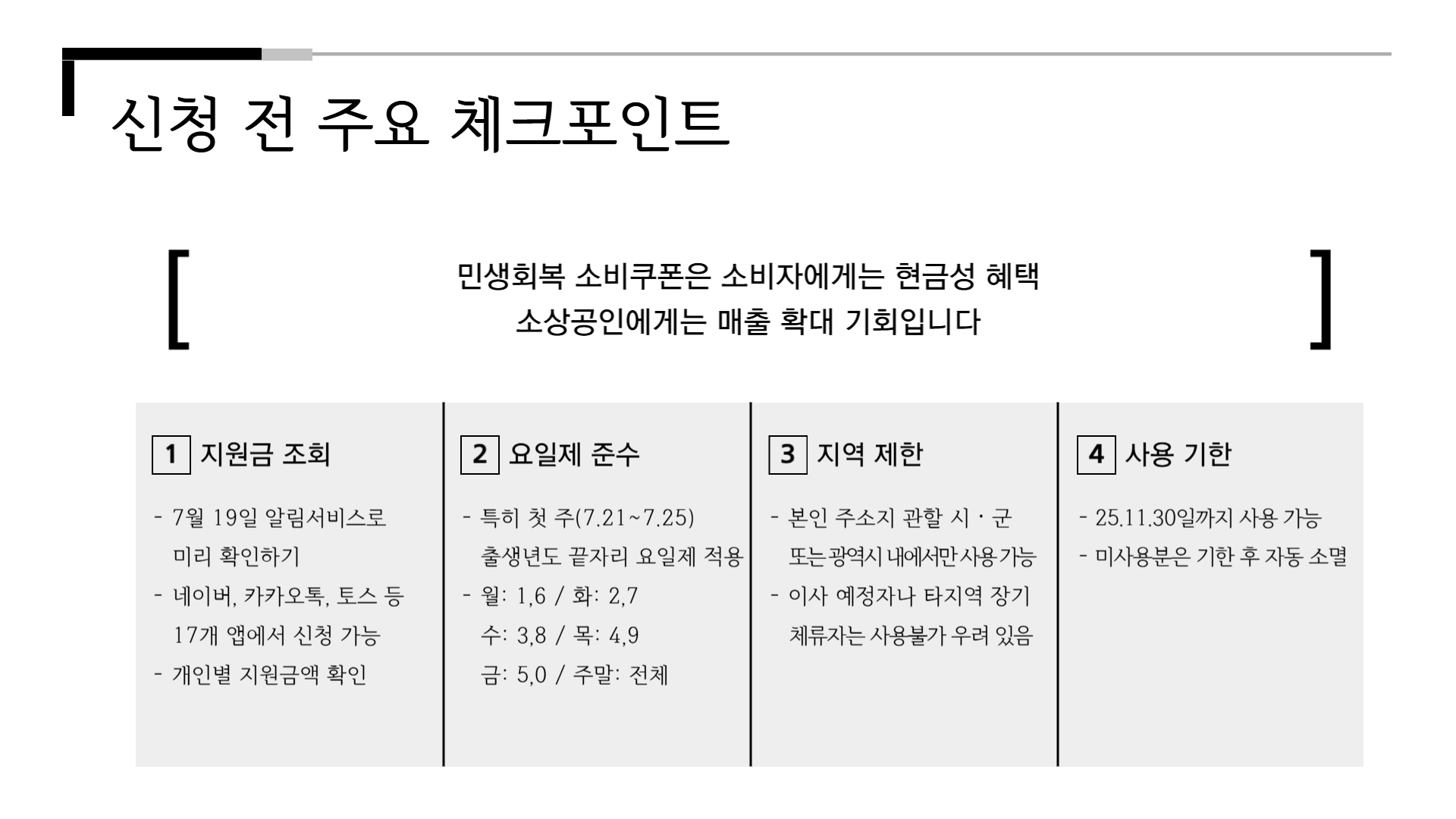 → 특히 신청 첫 주(7.21~7.25)는 출생년도 끝자리 요일제 적용