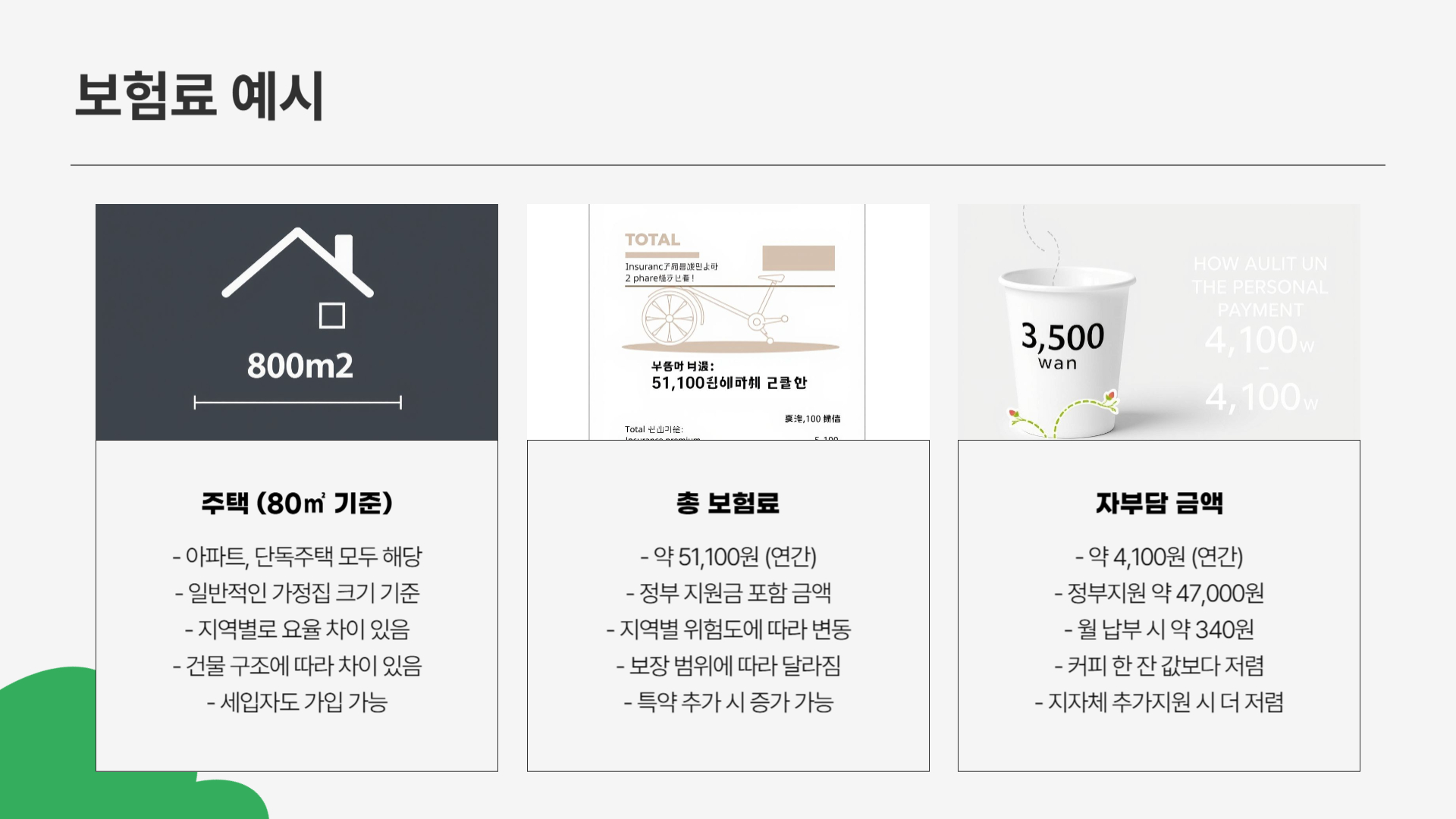 - 연간 몇천 원이면 자연재해 대비 가능