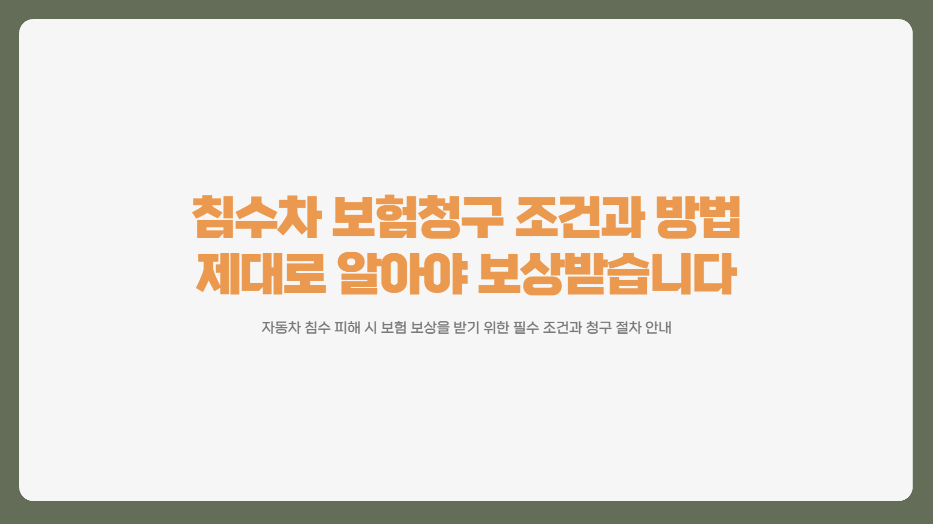 예상치 못한 침수 피해, 당황하지 말고 보험 절차만 정확히 알면 충분히 보상받을 수 있습니다.