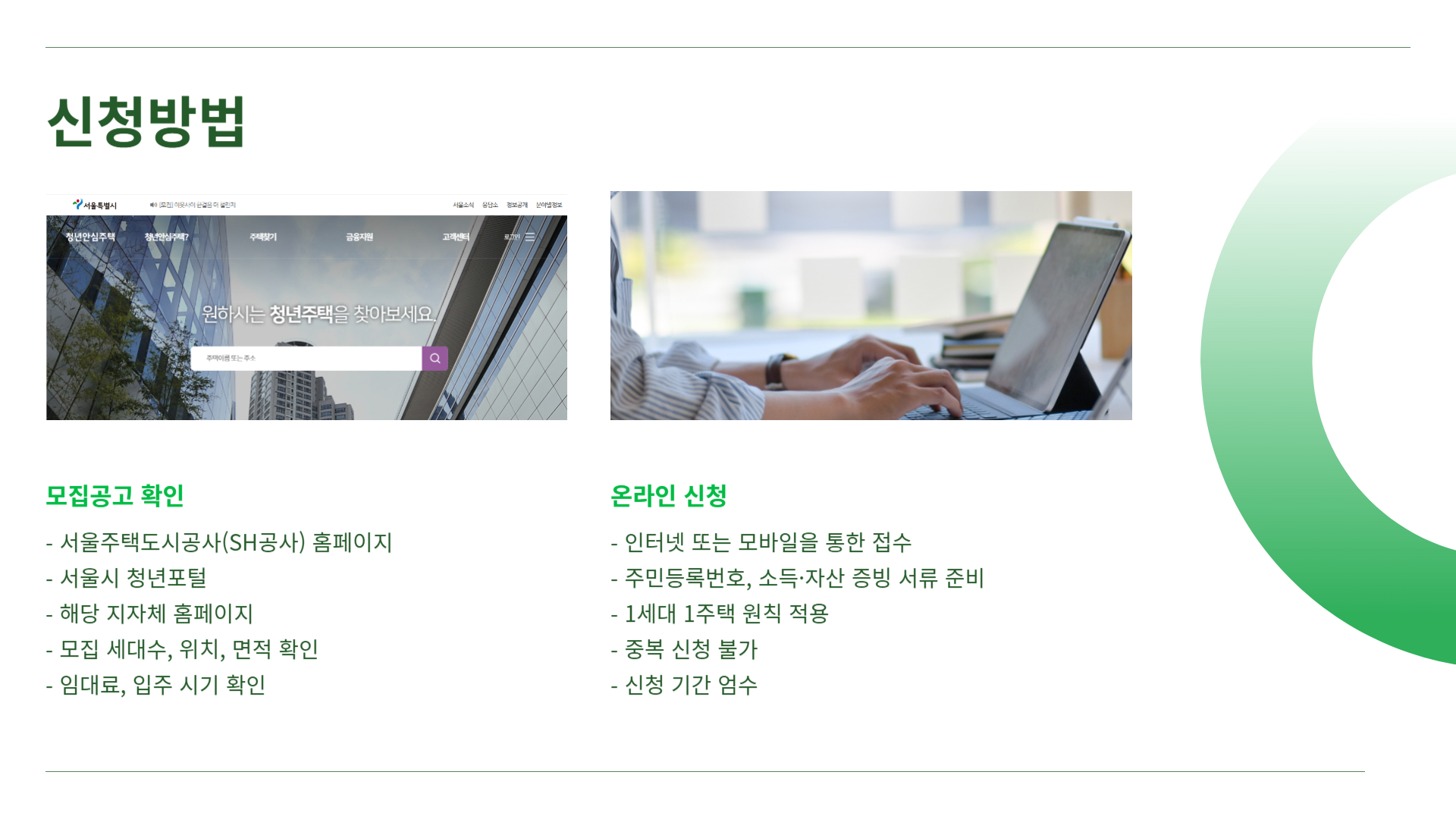 - 서울주택도시공사(SH공사) 또는 서울시 청년포털, 해당 지자체 홈페이지를 통해 공고문 확인